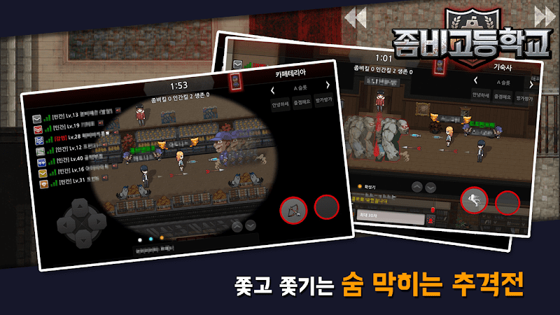 "좀비고등학교"를 놀랍게도 실제로 존재합니다! 이 게임은 모바일로 플레이 가능한 대전 서바이벌 게임입니다. 여러분은 좀비가 되어버린 학생들과 선생님들을 물리치면서 학교를 탈출해야 합니다. 게임은 간단한 그래픽과 컨트롤로 시작하여 점점 어려워지며, 능력을 강화하고, 아이템을 수집하며, 맵을 탐험하면서 생존을 위한 전략을 짜야 합니다. 긴장감 넘치는 이 게임을 추천드립니다.